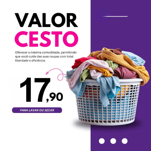 O valor não muda para lavar cobertor, edredom, colcha ou coberta. A cobrança é feita por cesto, não por peça — você paga o mesmo valor, independentemente do que e de quanto couber no cesto.